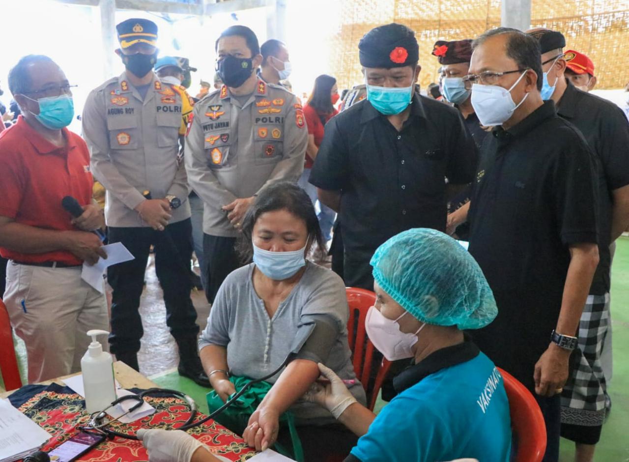 Gubernur Bali, Wayan Koster bersama Kapolda Bali, Irjen Pol. Putu Jayan Danu Putra meninjau pelaksanaan vaksinasi booster di 3 kabupaten, seperti Kabupaten Klungkung yang berlangsung di Gedung Balai Budaya, Kabupaten Bangli yang berlangsung di GOR Taman Bali, dan Kabupaten Karangasem yang berlangsung di Desa Menanga serta Desa Besakih pada Minggu (Redite Umanis, Klawu) 6 Maret 2022.