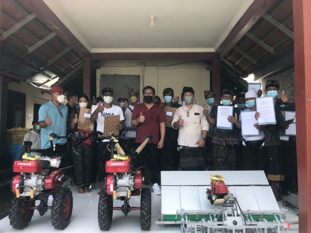 Bantuan tersebut diserahkan Wawali Arya Wibawa, didampingi anggota DPRD Kota Denpasar, I Wayan Suadi Putra dan Kepala Dinas Dinas Pertanian Denpasar, AA Ngurah Bayu Bramasta kepada 24 kelompok tani/subak di Denpasar. Juga diserahkan bantuan 17,1 ton benih padi, kelompok peternak menerima 60 bibit babi, 2 alat kultivator kepada Subak Sidakarya, 1 alat kultivator kepada Subak Renon dan 4 rice transplanter masing-masing 1 buah kepada Subak Sidakarya, Subak Sembung, Subak Uma Desa serta Pupuk NPK sebanyak 60 ton.