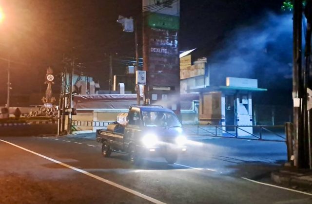 GELAR ULF – Pelaksanaan kegiatan Fogging Ultra Low Volume (ULV) di publik area (di luar ruangan) seperti jalan, taman, dan lapangan di wilayah Kota Denpasar yang dimulai pada Rabu (2/4).