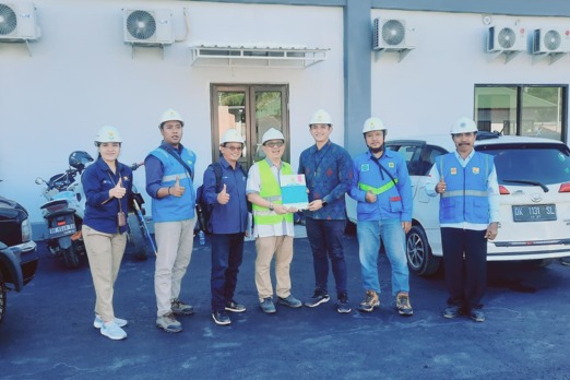 FOTO BERSAMA – Tim dari PT PLN Persero Unit Pelaksana Pelayanan Pelanggan UP3 Bali Timur menyempatkan foto bersama dengan Manager Proyek Rumah Sakit Kasna Medika Iswanto.