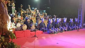 GONG KEBYAR DEWASA – Duta Kecamatan Mengwi tampil di hari kedua Lomba Gong Kebyar Dewasa FSB Badung 2023, Kamis (9/11/2023).