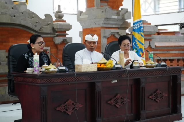 PIMPIN RAPAT – Duta PSBS PADAS Ibu Putri Koster memimpin rapat koordinasi penutupan Open Dumping TPA Suwung di Kantor Dinas Kehutanan dan Lingkungan Hidup Provinsi Bali, Kamis (4/12).