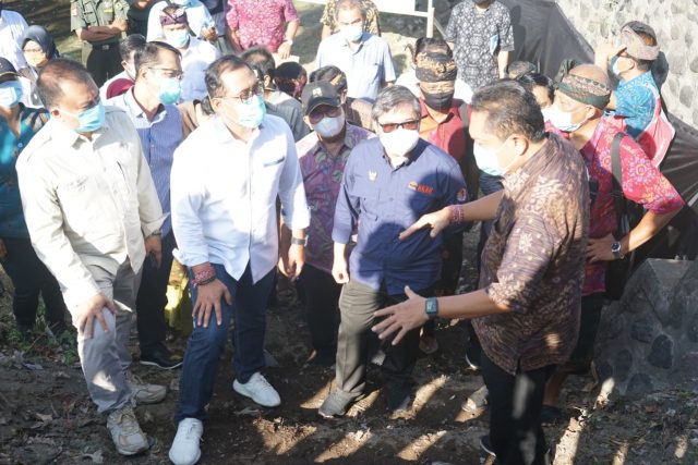 Wakil Menteri Lingkungan Hidup dan Kehutanan (LHK) RI, Alue Dohong meninjau rencana pembangunan embung Sanur yang berlokasi di wilayah Dusun Tanjung Desa Sanur Kauh, Kecamatan Denpasar Selatan, Kamis (22/10/2020). Kehadiran Wamen LHK RI, Alue Dohong disambut langsung Walikota IB Rai Dharmawijaya Mantra dan secara bersama-sama meninjau rencana lokasi pembangunan embung Sanur yang rencana pembangunannya akan dimulai 2021 depan, dengan anggaran dari Kementerian Pekerjaan Umum dan Perumahan Rakyat (PUPR).