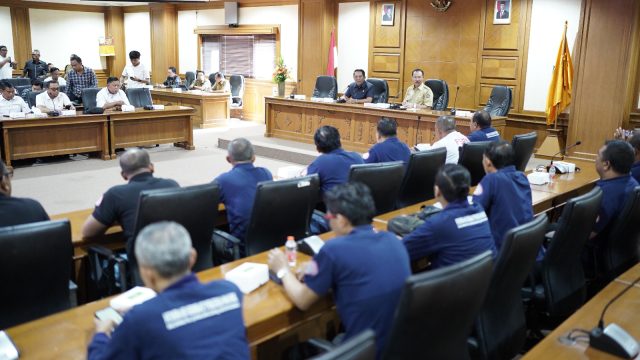 Ketua DPRD Badung Gusti Anom Gumanti bersama Kepala Dinas Perindustrian dan Tenaga Kerja (Disperinaker) Putu Eka Merthawan, Senin (11/11/2024) menerima perwakilan Serikat Pekerja Mandiri (SPM) Angkasa Pura. Serikat Pekerja meminta perlindungan dan penyelesaian terhadap enam pekerja di PT Angkasa Pura Support yang masih diskorsing.