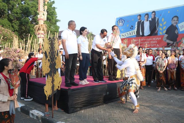 Pemerintah Kabupaten Badung menggelar jalan sehat dan Jumat Ceria serangkaian semarak Peringatan HUT ke-14 Ibukota Kabupaten Badung, Mangupura. Jalan sehat yang diikuti pegawai Pemkab Badung dan para siswa ini dilepas oleh Asisten Pemerintahan dan Kesra Setda Badung I Nyoman Sujendra di Lapangan Puspem Badung, Jumat (3/11). Kegiatan ini juga dirangkaikan dengan peringatan HUT ke-52 Korpri dan Hari Wayang Nasional.