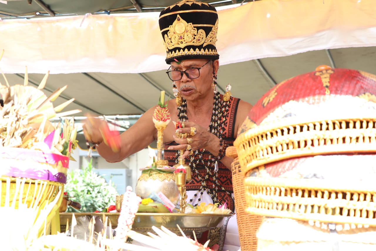Ida Pedanda yang muput pujawali Saraswati di FH Unud.