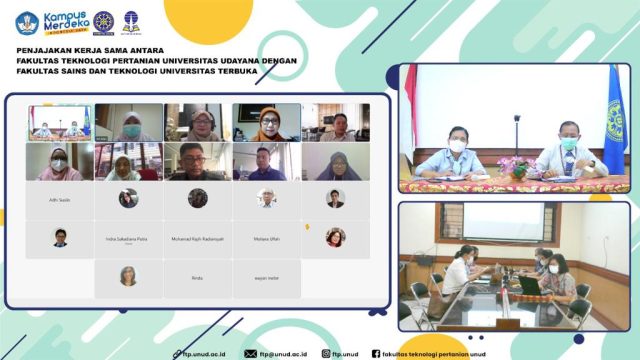Penjajakan kerja sama antara Fakultas Sains dan Teknologi Universitas Terbuka dengan Fakultas Teknologi Pertanian Universitas Udayana telah dilaksanakan secara hybrid di Gedung GA FTP Unud dan melalui webex meeting pada Rabu, 6 April 2022. Penjajakan kerja sama ini dihadiri oleh Dekan Fakultas Teknologi Pertanian Prof. Dr. Ir. I Made Anom Sutrisna Wijaya, M.App.Sc., beserta dekanat, koprodi dan koordinator unit di lingkungan FTP Unud.