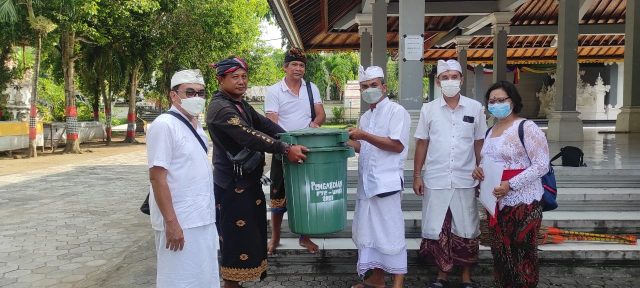 Bentuk pengabdian yang dilakukan adalah melalui kegiatan kerja bakti, bersih-bersih di areal pura dan penyerahan alat-alat kesehatan pendukung protokol kesehatan (masker dan sanitizer) dan sembako