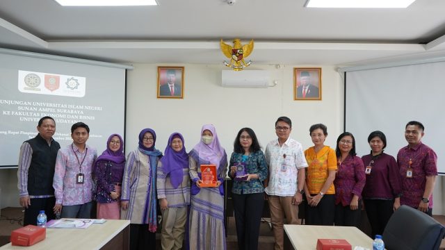 Fakultas Ekonomi dan Bisnis Universitas Udayana (FEB Unud) menerima kunjungan dari Fakultas Ekonomi dan Bisnis Universitas Islam Negeri (UIN) Sunan Ampel Surabaya pada Selasa (19/12/2023), bertempat di Ruang Rapat Pimpinan, Gedung Dekanat Bukit Jimbaran.