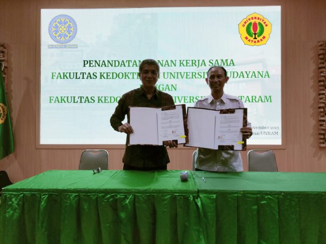 Fakultas Kedokteran Universitas Udayana (FK Unud) melaksanakan penandatanganan perjanjian kerja sama (PKS) di bidang penelitian dan pengabdian kepada masyarakat (PKM) dengan Fakultas Kedokteran Universitas Mataram (FK Unram). Kegiatan ini dilaksanakan pada 6 November 2023 di Auditorium Yunita Sabrina, FK Unram.