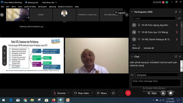MBKM – Sosialisasi MBKM di kalangan FMIPA Unud yang dilakukan melalui media webex meeting.