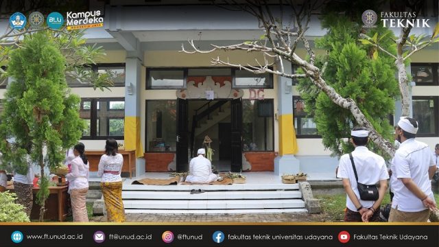 Fakultas Teknik Universitas Udayana (FT Unud) menggelar upacara pemlaspasan pascarenovasi gedung kuliah DE dan DG pada Senin, 20 Februari 2023 bertepatan dengan Hari Tilem Sasih Kawulu. Upacara ini menjadi bagian dari rangkaian pecaruan Rsi Gana yang dilaksanakan oleh universitas pada gedung baru yang selesai dibangun atau pascarenovasi yang berpusat di Rumah Sakit Gigi dan Mulut Universitas Udayana. Kegiatan yang dikoordinatori oleh masing-masing fakultas ini bertujuan menyucikan dan membersihkan gedung-gedung pascapembangunan secara niskala sesuai kepercayaan umat Hindu terkhusus di Bali.