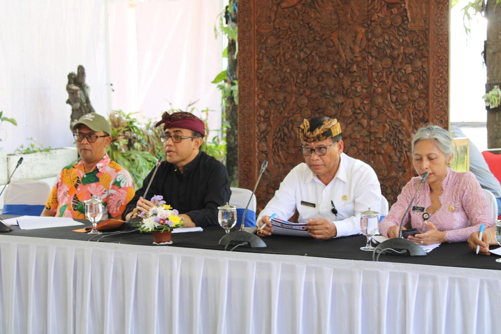 DENFEST 2023 – Walikota GN Jaya Negara didampingi Sekda IB Alit Wiradana saat jumpa media terkait Denfest 2023, Kamis (21/12) di Inna Bali Heritage.