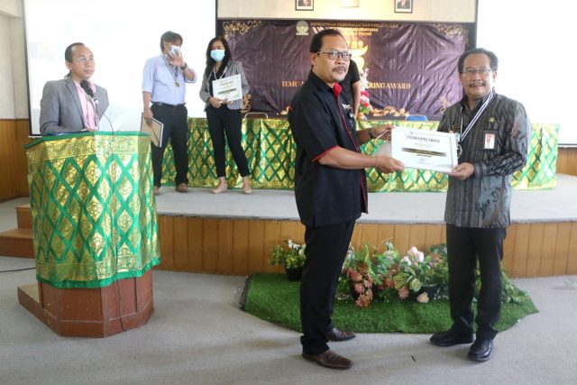 AWARD – Gede Pramana saat menerima engineering award dari Fakultas Teknik Unud, Rabu (30/9/2020).