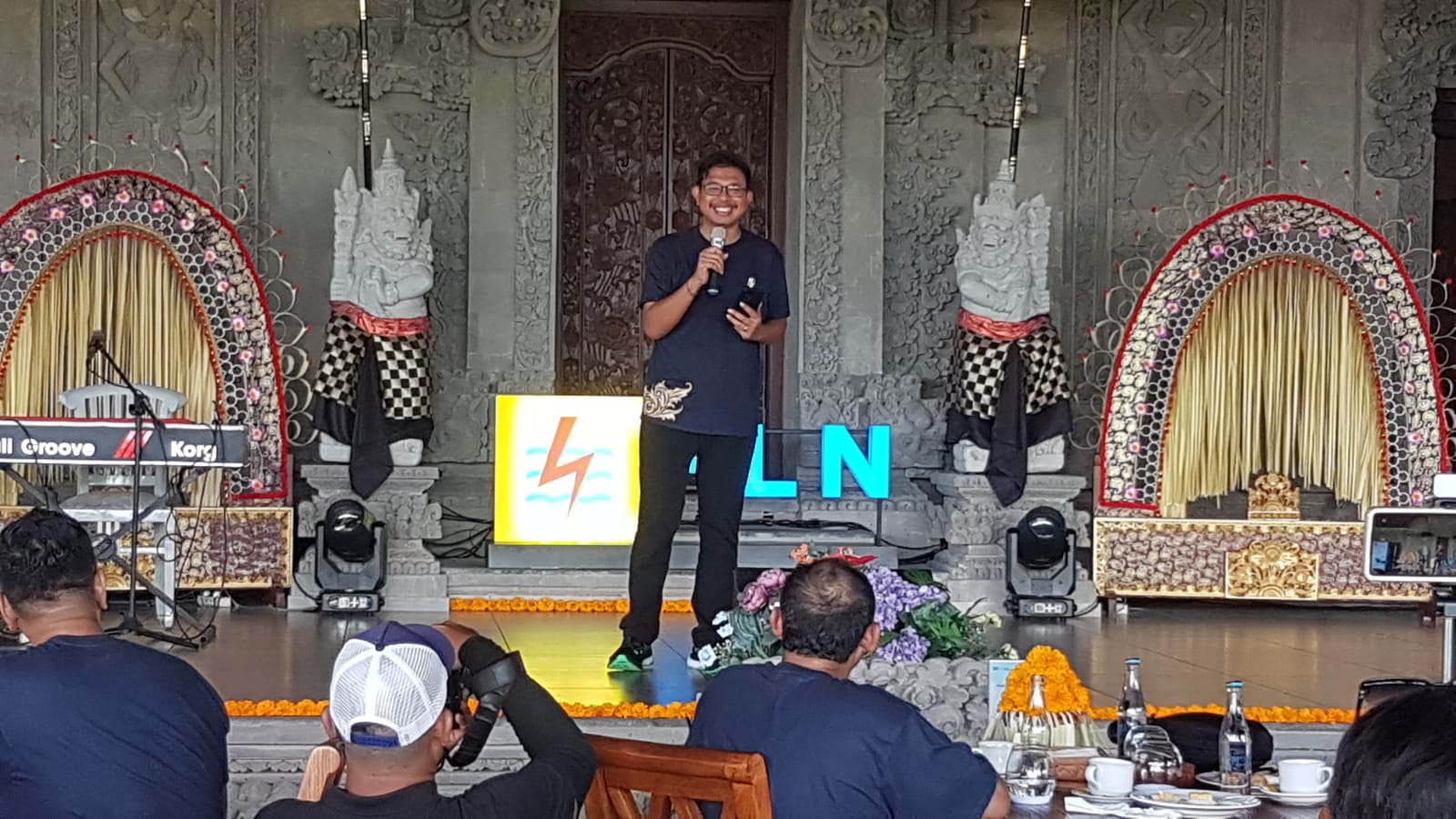 SIAGA PEMILU 2024 – Plh. GM PLN UID Bali Putu Eka Astawa memberikan paparan terkait upaya yang dilakukan untuk siaga Pemilu 2024 saat gathering media di Taman dedari Kedewatan Ubud, Rabu (7/2/2024).