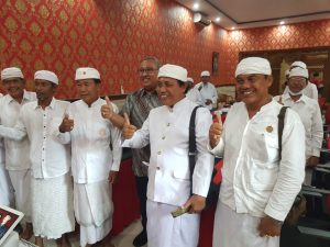 PEMANGKU – Ketua DPRD Badung Putu Parwata saat menerima para pemangku yang tergabung dalam PSK Kuta Utara.