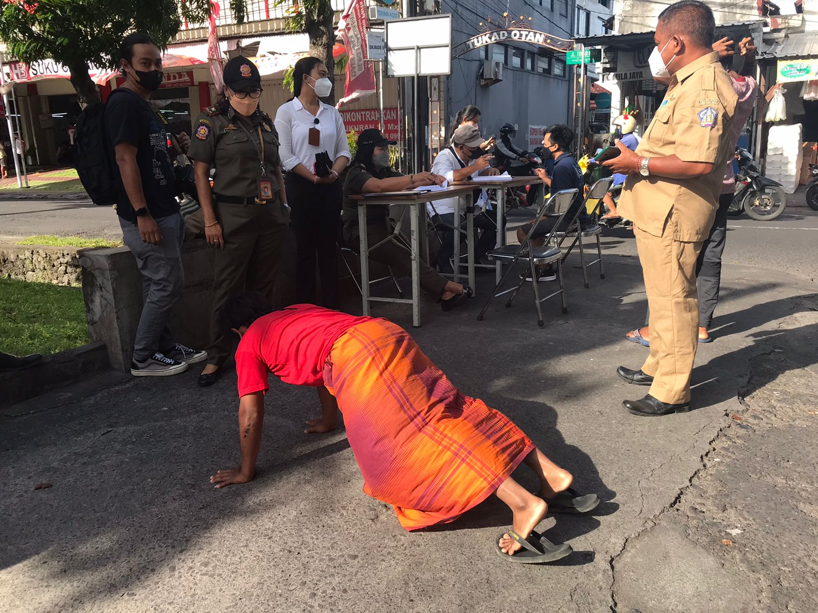 Tim Yustisi Kota Denpasar kembali menjaring 37 orang yang melanggar protokol kesehatan PPKM Level 2. Pelanggar dijaring saat penertiban di Jalan Tukad Pakerisan, Kelurahan Panjer Kecamatam Denpasar Selatan, Senin (24/1).