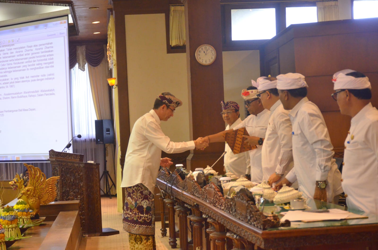 Rapat paripurna tersebut dipimpin Ketua DPRD Bali Nyoman Adi Wiryatama didampingi wakilnya Nyoman Sugawa Korry, Sekwan Gede Indra Dewa Putra serta anggota DPRD Bali. Hadir juga Gubernur Bali Wayan Koster didampingi sejumlah pimpinan OPD serta ratusan undangan lainnya.