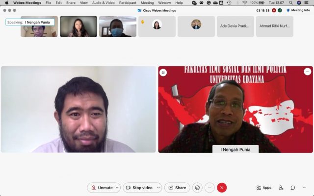 Pada Selasa, 25 Januari 2022 pukul 11.00 WITA, Program Studi Ilmu Politik Universitas Udayana bekerja sama dengan Tim Jurnal Widya Sosiopolitica FISIP menyelenggarakan workshop yang bertemakan Menuju Jurnal Terakreditasi secara daring melalui Webex. Kegiatan workshop ini mengundang Cahyo Seftyono selaku Lead Editor Jurnal Politik Indonesia: IPSR, Universitas Negeri Semarang dan dipandu oleh Ni Wayan Radita Novi Puspitasari, S.S.,M.A.,M.Phil. yang merupakan dosen Ilmu Politik, Universitas Udayana.