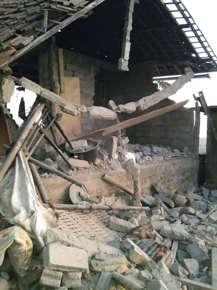 ROBOH – Salah satu bangunan yang roboh akibat gempa bermagnitudo 4,8, Sabtu (16/10).