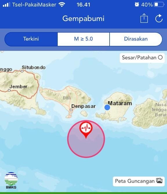 Sumber gempa ada di kedalaman 134 km arah selatan Nusa Penida, Klungkung.
