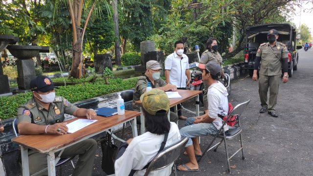 Penertiban prokes di Jalan Sutoyo Denpasar.