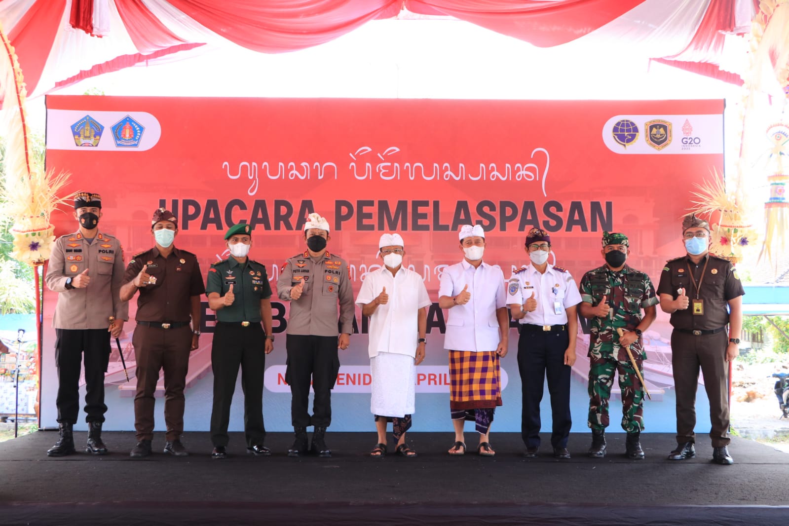 Gubernur Bali, Wayan Koster bersama Kapolda Bali, Irjen Pol. Putu Jayan Danu Putra menghadiri Upacara Pemlaspasan Pelabuhan Sampalan di Nusa Penida, Klungkung pada Jumat (Sukra Paing, Sinta) tanggal 1 April 2022 yang didampingi oleh Bupati Klungkung, I Nyoman Suwirta dan Kepala Balai Pengelola Transportasi Darat (BPTD) Wilayah XII Provinsi Bali dan Provinsi NTB Muiz Thohir.