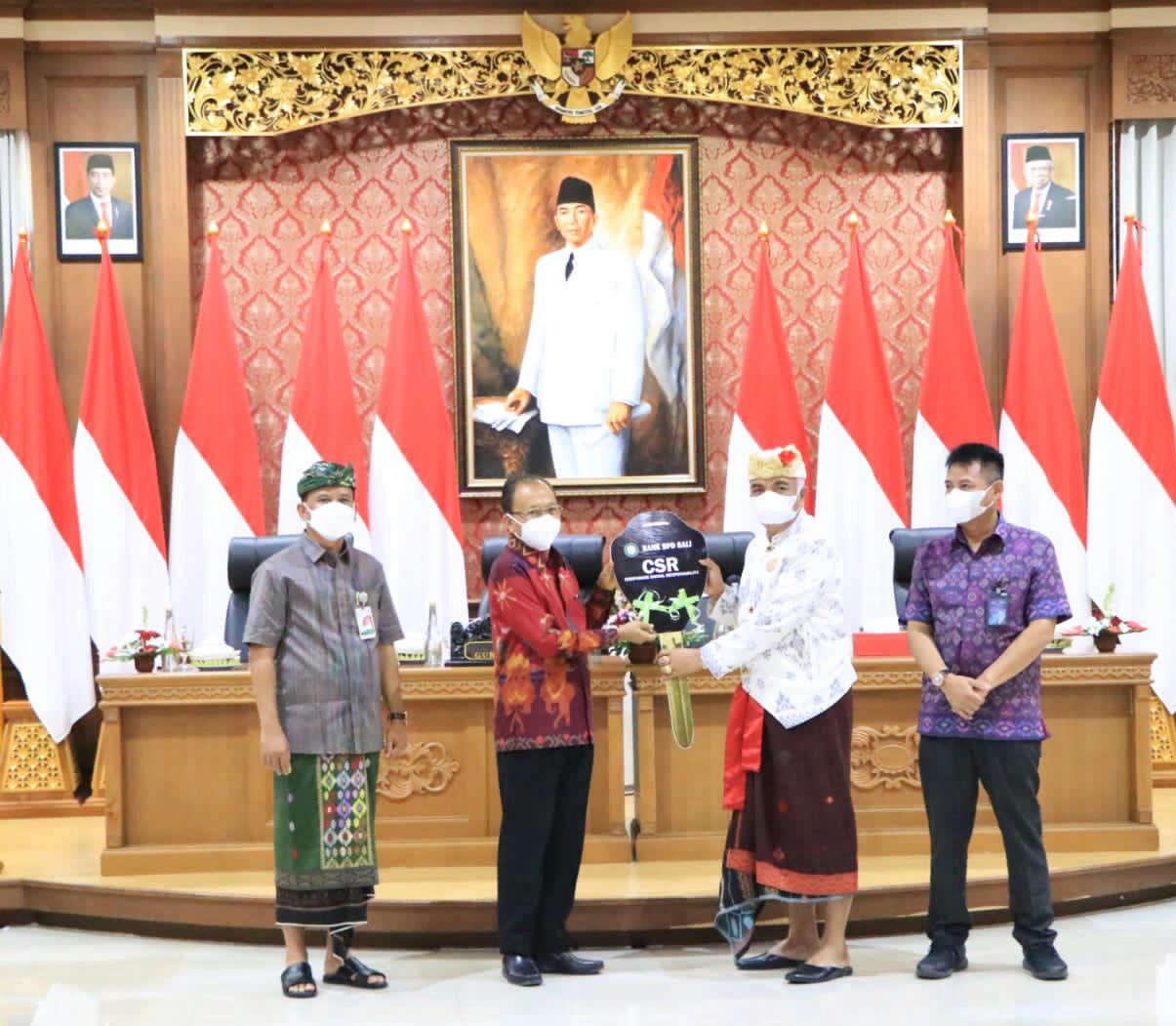 Gubernur Bali menyampaikan terima kasih kepada BPD Bali dan PT Pegadaian Kantor Wilayah VII Denpasar, karena telah memberikan bantuan corporate social responsibility (CSR) masing-masing berupa 1 unit mobil Totoya Avansa yang akan dimanfaatkan sebagai operasional Majelis Desa Adat Kabupaten/Kota se-Bali.