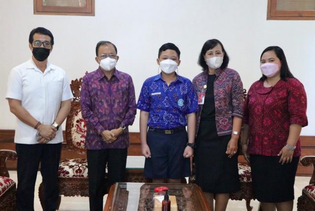 Gubernur Bali Wayan Koster, memberikan apresiasi atas torehan prestasi yang diraih oleh salah satu siswa sekolah dasar (SD) asal Bali di ajang Olympiade Internasional. Dia adalah I Gusti Ngurah Gede Angga Panji Kenanta (12) siswa SD Cipta Dharma Denpasar. Angga berhasil meraih juara perunggu pada International Mathematics and Science Olympiad (IMSO) ke-17 yang pada tahun ini dilakukan secara daring karena pandemi covid-19.