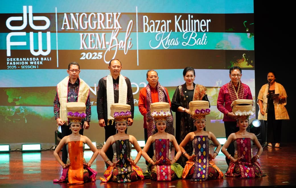 Dekranasda Bali Fashion Week 2025 dibuka secara resmi oleh Gubernur Bali Wayan Koster didampingi oleh Ketua Dekranasda Provinsi Bali Putri Koster, serta para kepala OPD terkait. Pembukaan ditandai dengan penampilan Tari Rupali dan prosesi simbolik nyuwun keben sebagai wujud penghormatan terhadap alam dan warisan budaya Bali. (sar/hmprov)