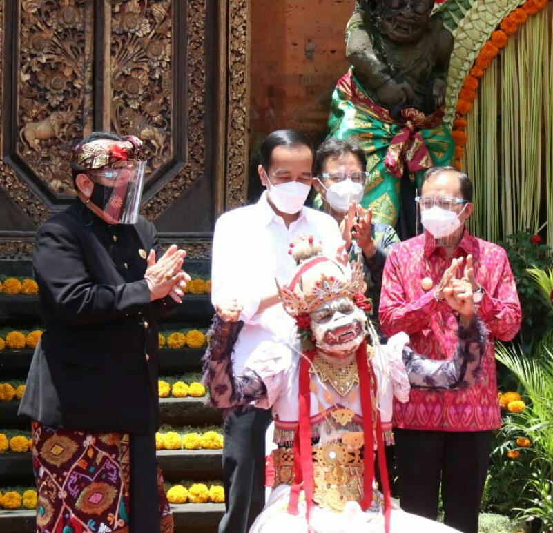 “Saya berterima kasih ke Pak Gubernur, Wagub, dan bupati/walikota yang tidak kenal lelah, selalu mengingatkan kepada masyarakat, agar selalu menjaga protokol kesehatan secara ketat, sehingga laju penyebaran covid bisa berkurang di Bali,” ujar Jokowi yang juga didampingi Sekretaris Kabinet, Pramono Anung, Menteri Kesehatan RI, Budi Gunadi Sadikin, Menteri Pariwisata dan Ekonomi Kreatif, Sandiaga Uno, Pangdam IX/Udayana, Mayjen TNI Maruli Simanjuntak, Kapolda Bali, Irjen Pol. Putu Jayan Danu Putra, dan Bupati Gianyar, I Made Mahayastra.