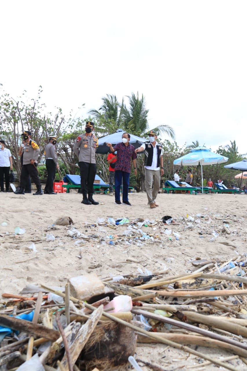 Dengan suasana hujan gerimis, Gubernur Koster yang didampingi Kasat Pol PP Bali, Dewa Nyoman Rai Dharmadi di Pantai Kuta melihat tidak banyak ada wisatawan atau masyarakat yang berkerumun. Namun, sebagian pengunjung yang menikmati Pantai Kuta tersebut mengeluh di hadapan Gubernur Koster terkait menumpuknya berbagai jenis sampah di sepanjang pesisir Pantai Kuta, seperti sampah plastik, kayu, hingga sampah dari styrofoam.