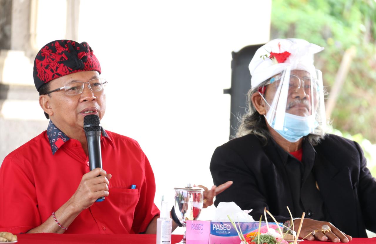 “Kita bangkitkan, kuatkan, bangun, dan wujudkan kembali nilai-nilai peradaban kebudayaan Bali melalui Nangun Sat Kerthi Loka Bali secara sekala dan niskala, karena jatidiri atau unteng-nya di Bali adalah adat, seni, tradisi, budaya, dan kearifan lokal,” pungkasnya.