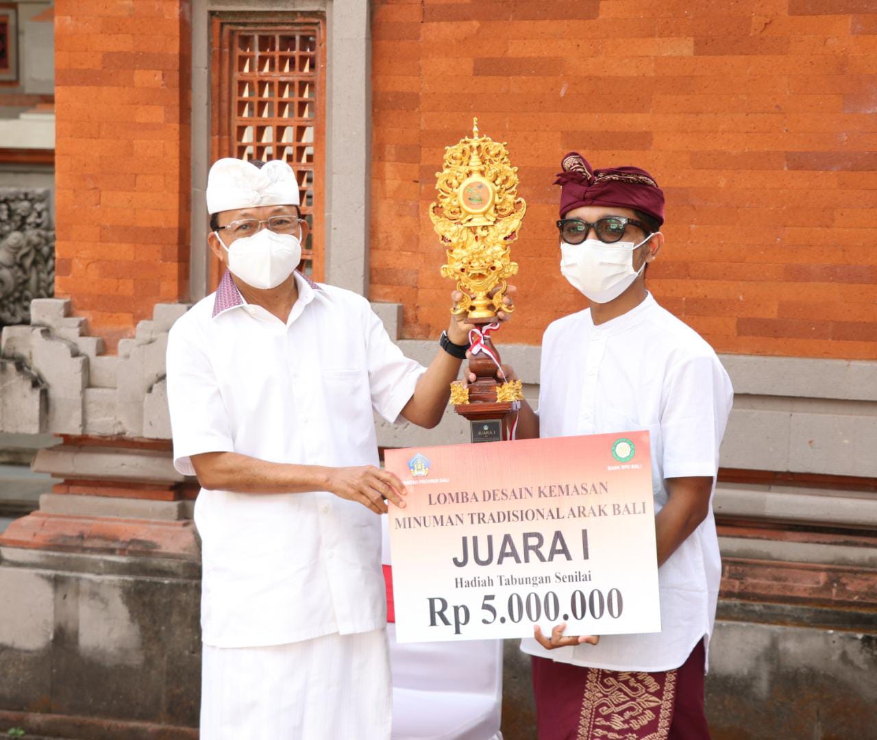 Sebelumnya, dalam Lomba Desain Kemasan Minuman Tradisional Arak Bali tersebut telah ditetapkan pemenang oleh dewan juri yakni Juara I diraih oleh I Made Januarta, Juara II I Wayan Parwata dan Juara III diraih oleh I Made Sadnyana. Masing-masing juara membawa pulang piagam, piala, uang tunai