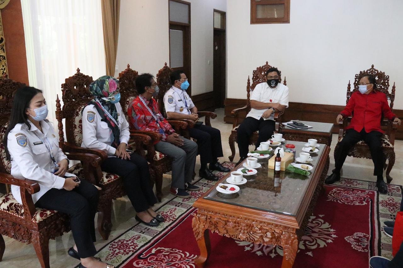 AUDIENSI – Gubernur Wayan Koster saat menerima audiensi Direktur Utama Perum Pengangkutan Penumpang Djakarta (PPD) Pande Putu Yasa, Rabu (4/11/2020).