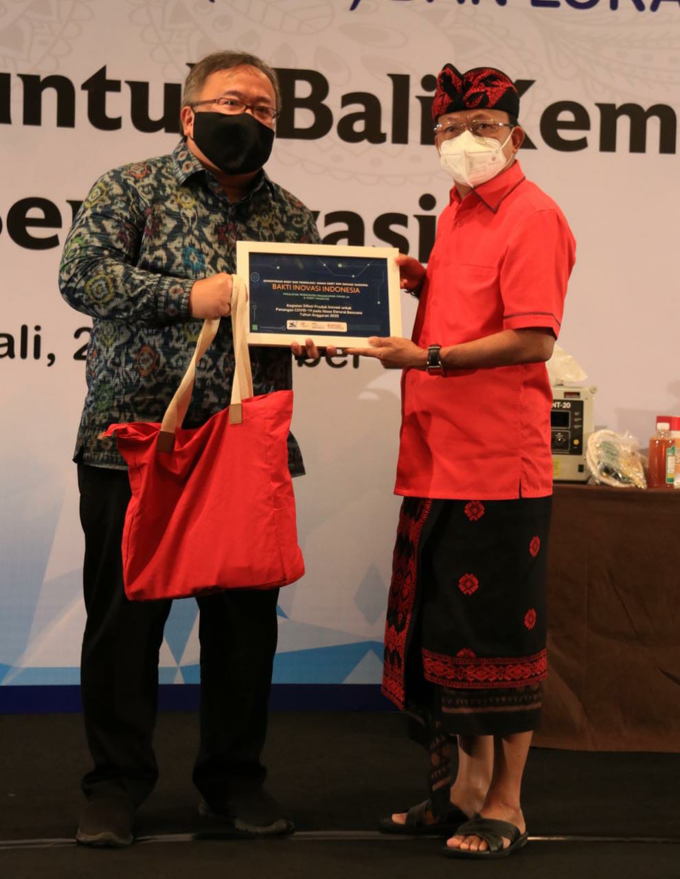 Gubernur Bali Wayan Koster menerima secara langsung penyerahan produk Bakti Inovasi Indonesia untuk wilayah Provinsi Bali oleh Menteri Riset dan Teknologi (Menristek) RI sekaligus Kepala Badan Riset dan Inovasi Nasional (BRIN) Bambang Brodjonegoro di Ballroom Nusantara, The Westin Resort, Nusa Dua, Selasa (22/12). Penyerahan digelar usai acara Lokakarya Desa Berinovasi bertajuk “Bakti Inovasi untuk Bali Kembali Bali Bernovasi”.