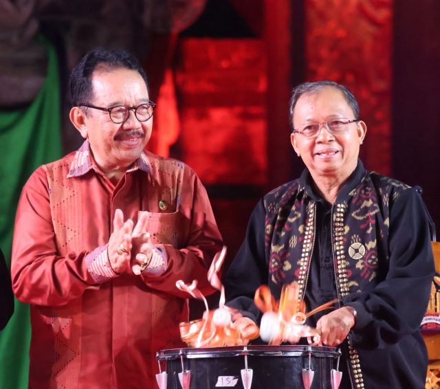 TUTUP FSBJ – Gubernur Bali Wayan Koster didampingi Wagub Cok Ace menutup secara resmi Festival Seni Bali Jani (FSBJ) 2023, Minggu (30/7/2023).