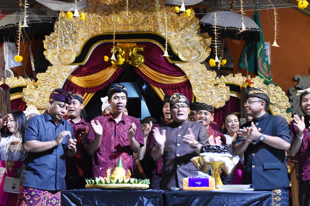 HUT – Bupati Badung I Nyoman Giri Prasta saat menghadiri perayaan HUT ke-35 ST Dharma Yoga di Balai Br. Dangin Pangkung, Desa Kekeran, Kecamatan Mengwi, Selasa (2/7).
