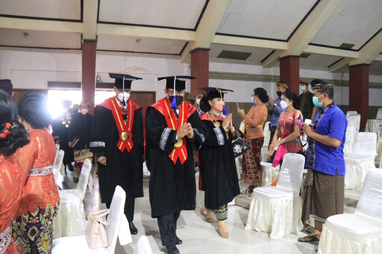 Tak lupa, Wagub Cok. Ace pun mengicapkan selamat kepada ketiga guru besar yang dikukuhkan. Ia pun berharap ketiga guru besar tersebut bisa langsung memperlihatkan karya untuk mewujudkan cita-cita bersama. “Masyarakat Bali tentu menunggu kerja nyata Guru Besar ISI Denpasar terutama untuk terlibat aktif dalam penguatan dan pemajuan seni budaya Bali,” tandasnya.