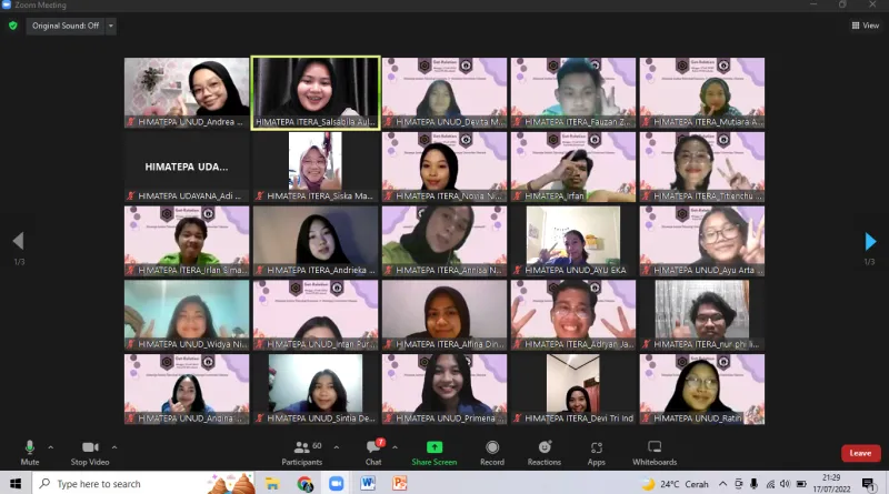 Himpunan Mahasiswa Program Studi Teknologi Pangan (Himatepa) Fakultas Teknologi Pertanian Universitas Udayana (FTP Unud) menyelenggarakan Himatalk untuk meningkatkan kualitas organisasi. Himatalk dilaksanakan oleh Himatepa Unud dengan Himatepa Itera (Institut Teknologi Sumatera), pada Minggu (17/7) secara online melalui Zoom Meetings. Kegiatan ini dihadiri oleh seluruh fungsionaris Himatepa Unud dan Himatepa Itera.