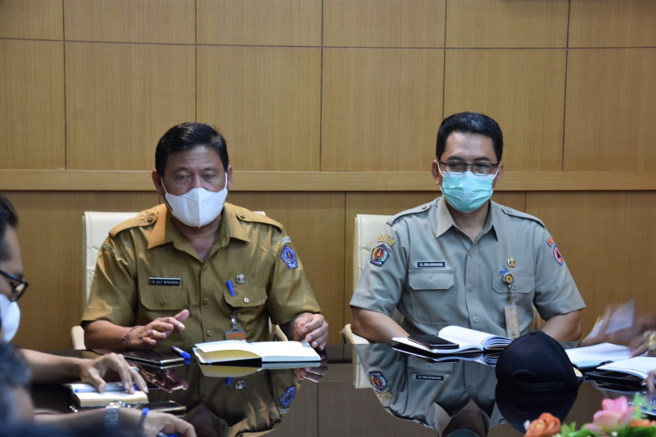 SIAGA BENCANA – Sekda Kota Denpasar IB Alit Wiradana memimpin rakor terkait siaga bencana serta penertiban gepeng dan pengamen, Senin (1/11/2021).