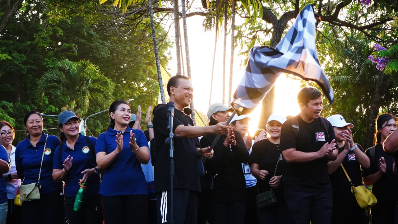 Sekretaris Daerah (Sekda) Provinsi Bali Dewa Made Indra melepas peserta jalan sehat yang digelar Dewan Pengurus Wilayah (DPW) Ikatan Fungsional Pengadaan Indonesia (IFPI) Bali, Jumat (26/9). Acara yang dipusatkan di depan Kantor Gubernur Bali ini merupakan rangkaian pembukaan Pekan Pengadaan Barang/Jasa Tahun 2025 dengan tema “Mendorong Pertumbuhan UMKK Lokal Bali melalui Pengadaan Barang/Jasa Pemerintah Sesuai Amanat Perpres 46 Tahun 2025”.