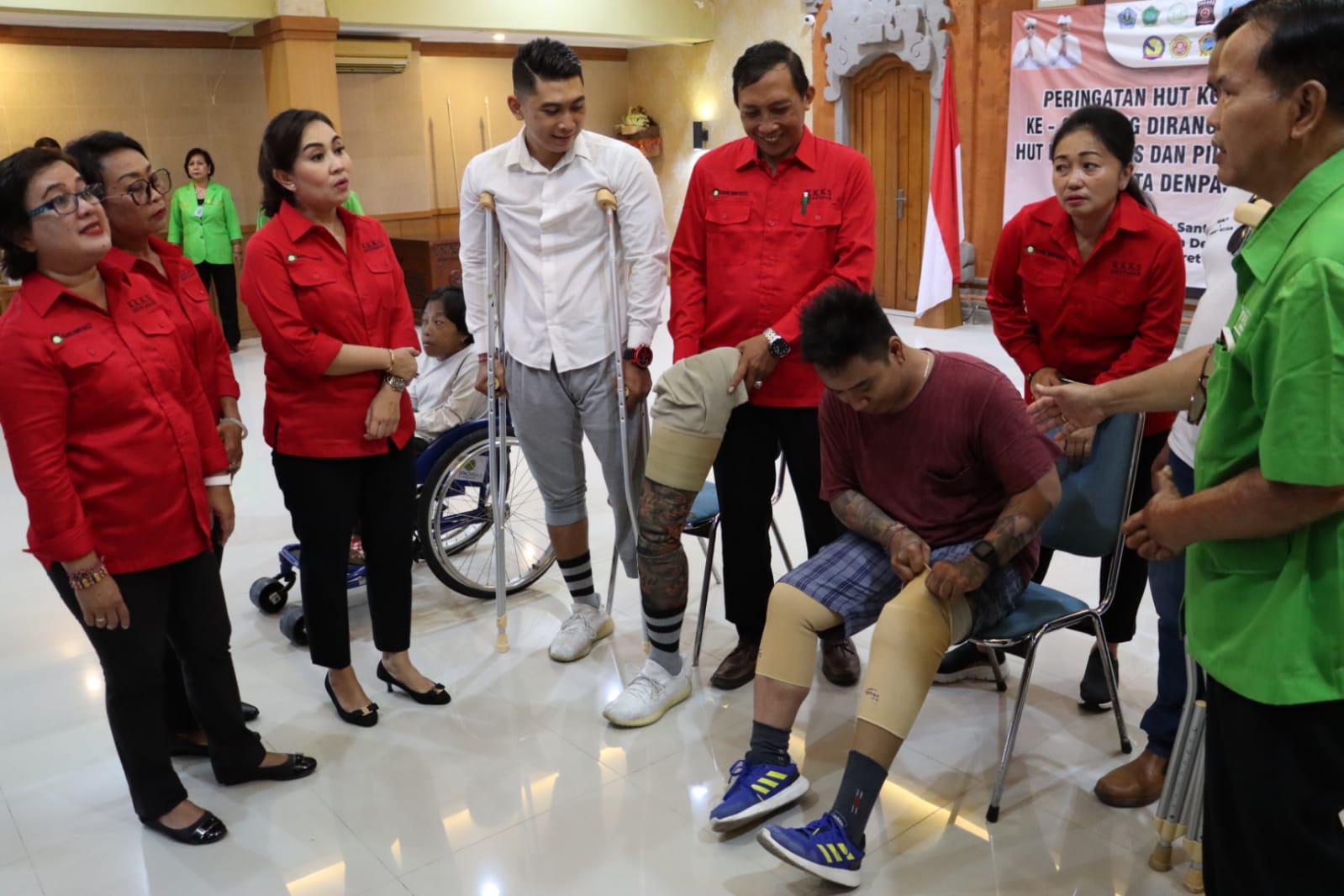 Perwakilan dari Pilar-pilar Sosial Denpasar, Elsye Suryawan dalam laporannya menyampaikan, sebagai mitra Pemkot Denpasar pihaknya mendukung Visi Misi Denpasar Kota Kreatif Berbasis Budaya Menuju Denpasar Maju dengan spirit Vasudaiva Khutumbakam kita bersinergi semakin kuat bersama Pemkot Denpasar, pihak swasta dan masyarakat. “Maka dari itu kegiatan HUT FK-LKS dan Pilar-pilar sosial Denpasar diisi dengan menyerahkan bantuan sosial dari FK-LKS kepada Dinas Sosial senilai Rp 45.800.000 dan selanjutnya disalurkan kepada Pemerlu Pelayanan Kesejahteraan Sosial (PPKS) di Denpasar berupa alat bantu kaki palsu, kursi roda adaktif, kursi roda dewasa dan ratusan paket sembako. Pemeriksaan kesehatan berupa fisioterapi dari yayasan Peduli Kemanusiaan Bali,” ujarnya. (wes/hmden)
