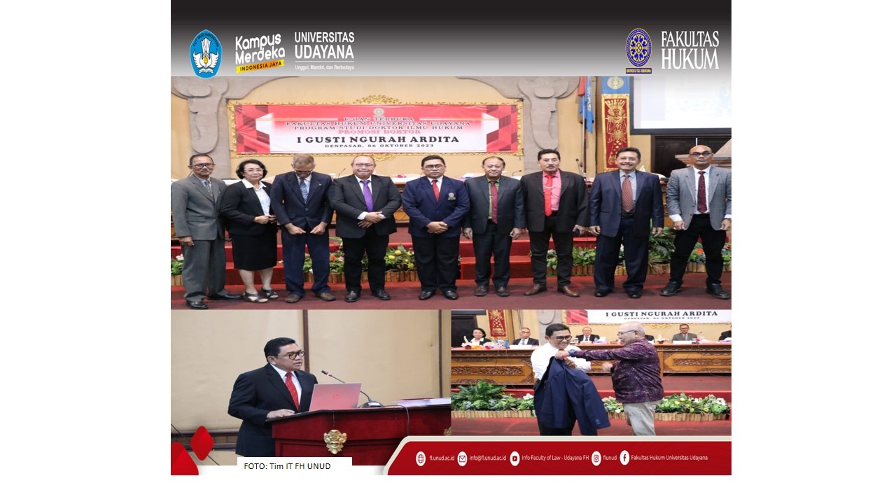 Pada Jumat (6/10/2023) telah dilangsungkan promosi doktor baru Ilmu Hukum pada Prodi Doktor (S3) Ilmu Hukum FH Unud atas nama I Gusti Ngurah Ardita dengan judul disertasi “Harmonisasi Hukum Dalam Pengaturan Pembangunan dan Pengusahaan Bandar Udara”.