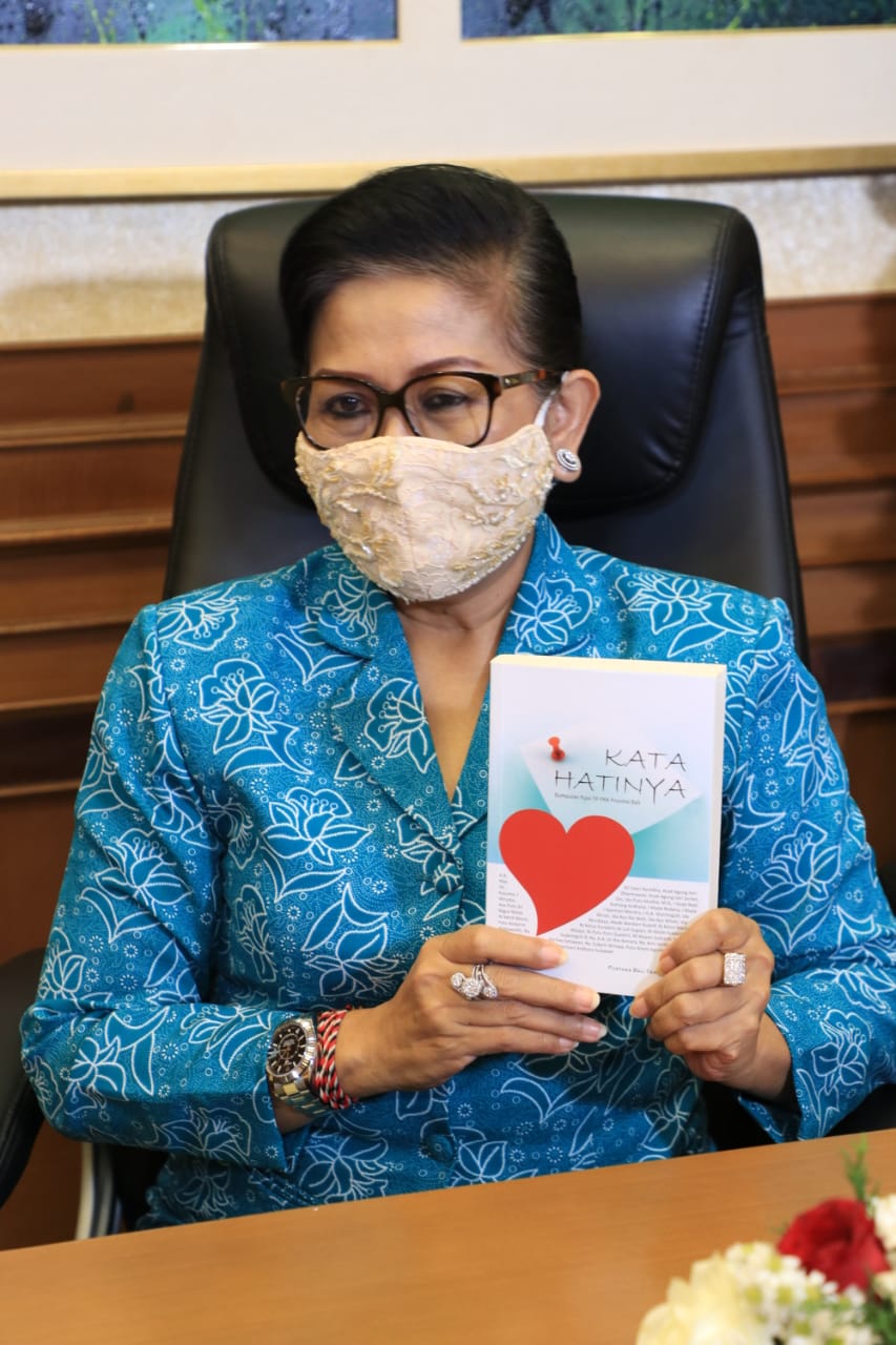 Untuk itu, Ny. Putri Koster menggagas antologi buku puisi bertajuk “Kata Hatinya” yang di dalamnya berisi kumpulan karya sastra puisi dari seluruh pengurus TP PKK Provinsi Bali. Hal tersebut disampaikan Putri Koster saat membuka acara launching buku ‘Kata Hatinya” yang dilakukan secara daring, bertempat di Jayasabha Denpasar, pada Selasa (11/8/2020).