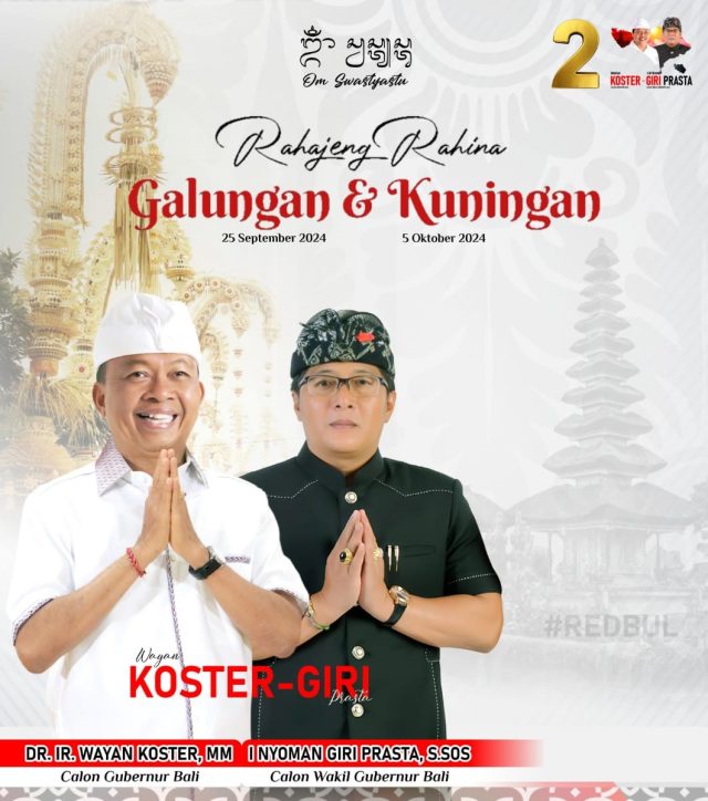 Dengan demikian Koster-Giri berharap dukungan dari masyarakat Bali agar Visi Nangun Sat Kerthi dapat dilanjutkan. “Titiang bersama Nyoman Giri Prasta sebagai calon Gubernur dan calon Wakil Gubernur Bali dengan nomor urut 2 memohon dukungan seluruh komponen masyarakat Bali supaya titiang bersama Nyoman Giri Prasta terpilih menjadi Gubernur dan Wakil Gubernur Bali,” harap Koster. (sar/r)