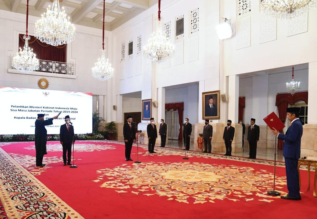 DILANTIK – Presiden saat melantik sejumlah menteri. Salah satunya, Menteri Investasi/Kepala BKPM Bahlil Lahadalia.