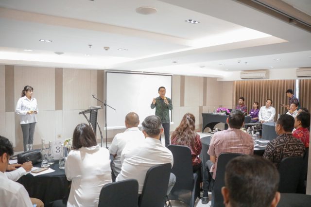 KEYNOTE SPEAKER – Sekda Badung I Wayan Adi Arnawa saat menjadi keynote speaker sekaligus membuka acara focus group discussion, di Hotel Dream Of Aventus Kuta, Kecamatan Kuta, Jumat (25/8).