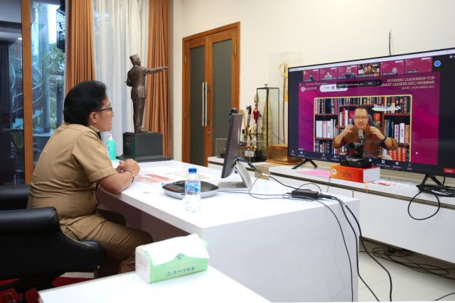 Bupati Badung I Nyoman Giri Prasta menjadi narasumber pada webinar Economic Leadership for Regional Government Leaders (REL) tahun 2021, Senin (1/11) dari Rumah Jabatan Bupati Puspem Badung. Webinar ini merupakan kolaborasi antara Bank Indonesia Institute (Bins) bersama Asosiasi Pemerintah Kabupaten Seluruh Indonesia (Apkasi) dan Asosiasi Pemerintah Kota Seluruh Indonesia (Apeksi) dalam rangka membekali pengetahuan wawasan ekonomi makro kepada para pejabat pemerintah daerah baik bupati/walikota.