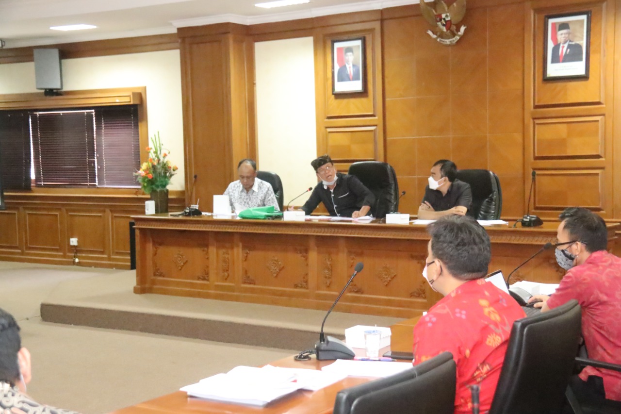 KERJA KERJA – Ketua Pansus Nyoman Dirgayusa memimpin rapat kerja untuk memperdalam pasal-pasal dalam ranperda, Selasa (14/9/2021).